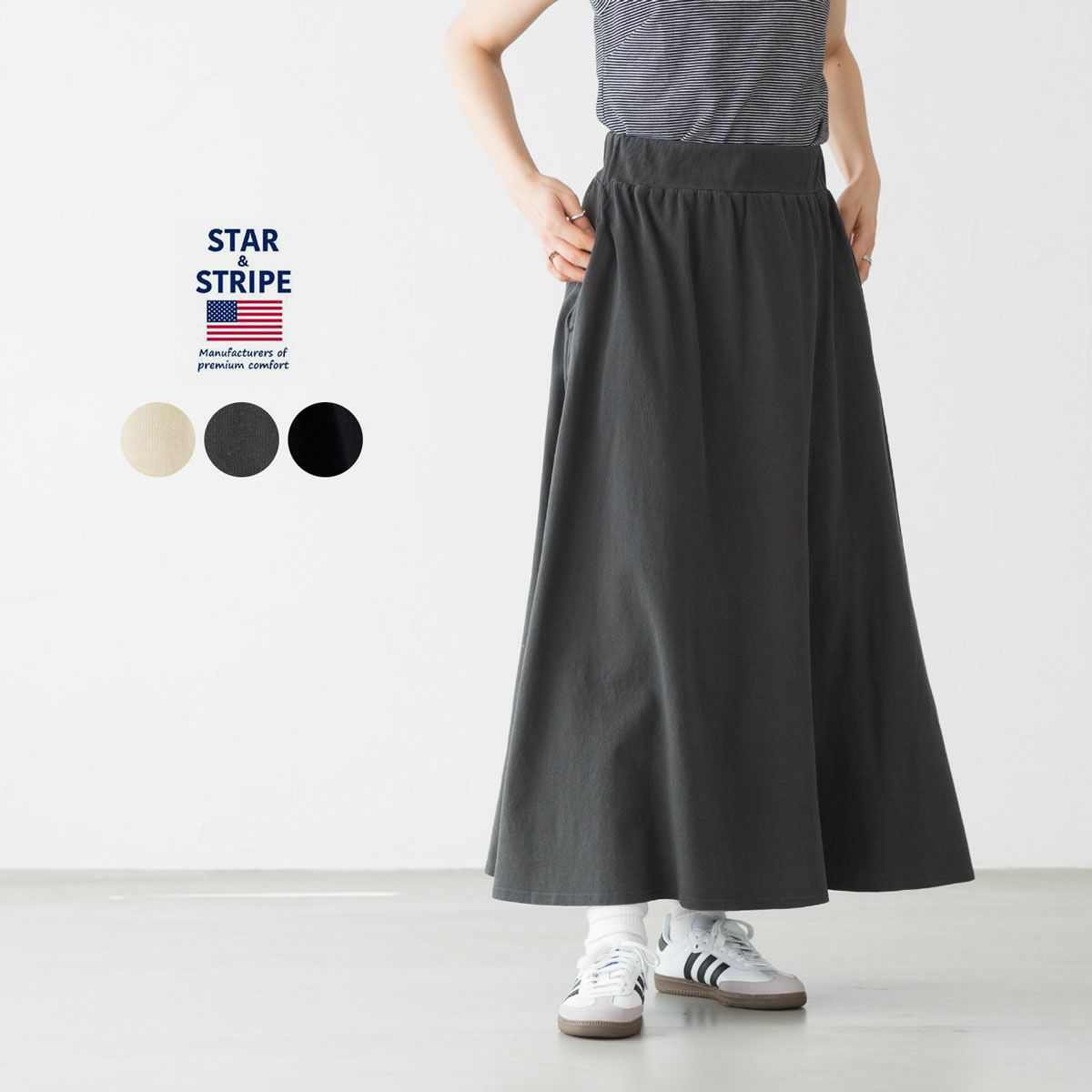 他の画像を見る カットソー生地の楽ちんロングスカート。 スターアンドストライプ ロング スカート STAR&STRIPE SSMD-080 レディース イージースカート 販売価格 ¥ 7,480 税込 詳細を見る お気に入りに登録する