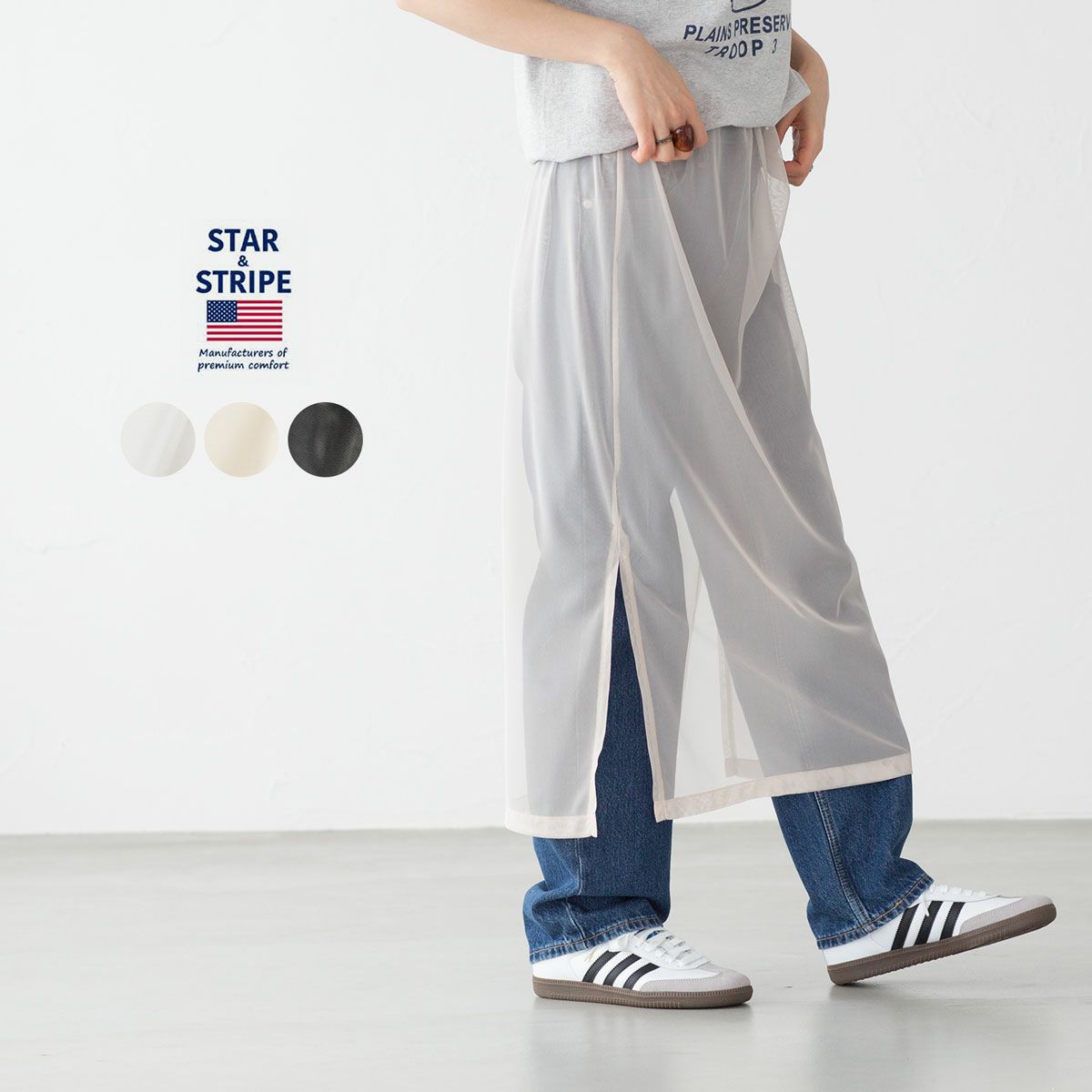 他の画像を見る お好きなボトムに重ねられるトレンドのシアースカート。 スターアンドストライプ シアー チュール シースルー スカート STAR&STRIPE SSMD-091 レディース [ネコポス可] 販売価格 ¥ 4,950 税込 カートに入れる お気に入りに登録する