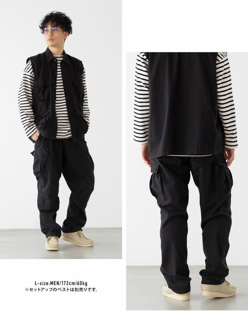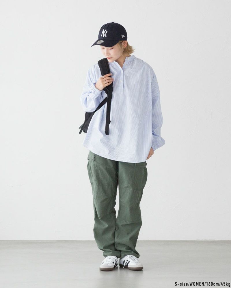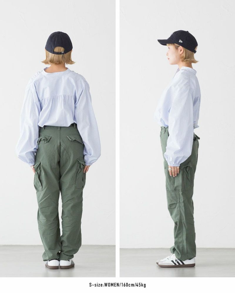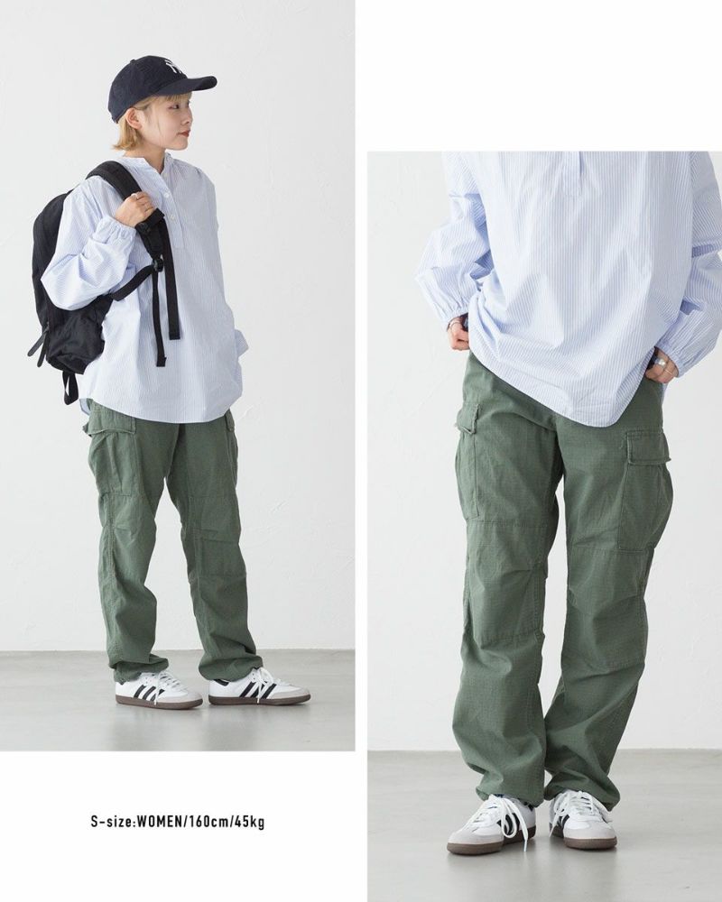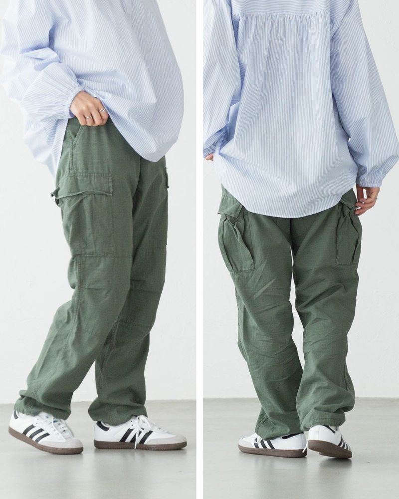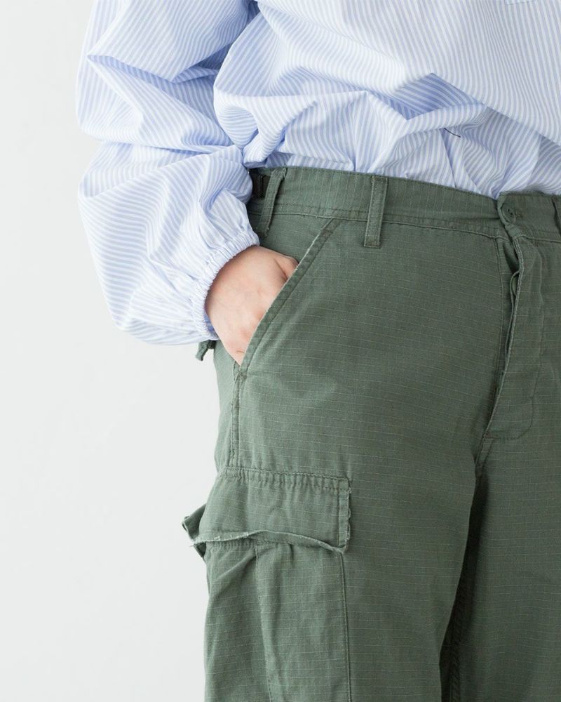 こちらはリップストップ生地にハードウォッシュ加工を施しており、柔らかく軽い仕上がりに。街着として気軽に取り入れやすく女性にもおすすめの一本です。