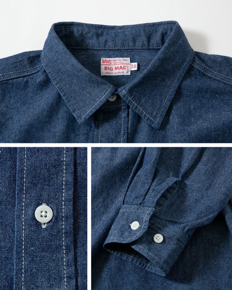 ビッグマックの定番シャンブレーシャツ。今っぽく着こなせるルーズフィット、本格的なワークディテールが特徴です。
