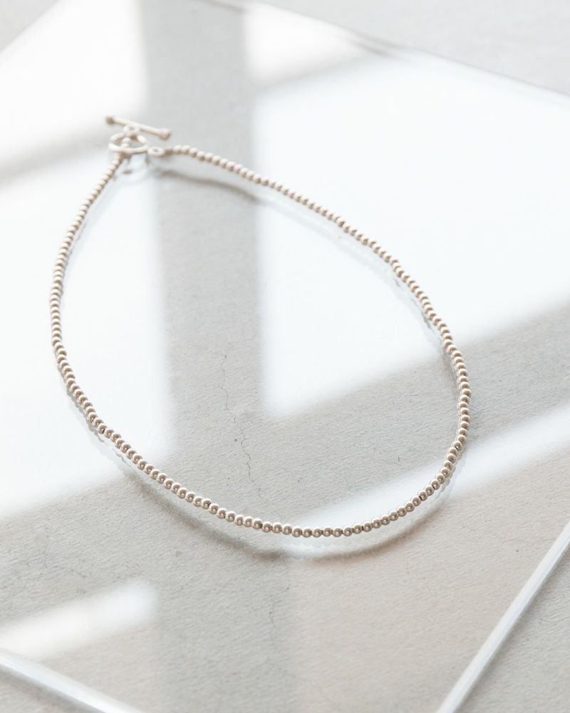 燻し加工をせず、あえて黒みを出さないことで性別関係なく身につけられるフラットな表情に仕上げています。