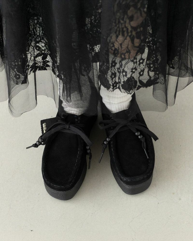 シューレースに配された可愛らしいビーズの飾りは、実はクラークスのヴィンテージから着想されたもの。豊富なアーカイブから生まれる遊び心も、歴史の長いクラークスならではです。