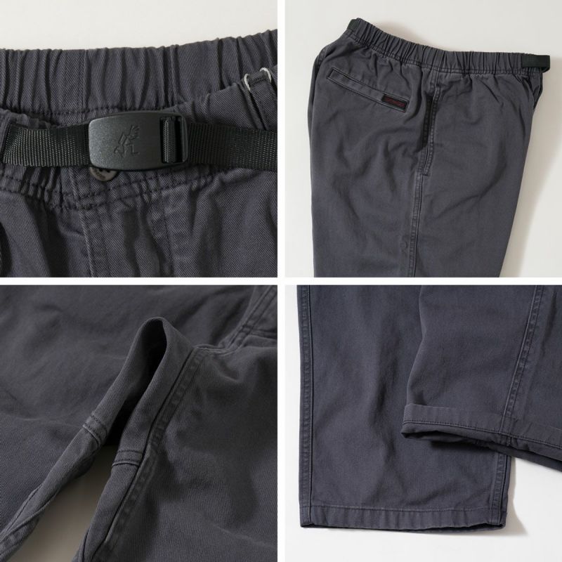 耐久性が高く、ハリコシのある、激しい動きにも耐えるオーガニックコットン使用のコットンツイルを使用。グラミチならではの染色方法で雰囲気のある表情に染め上げている点もポイントです。