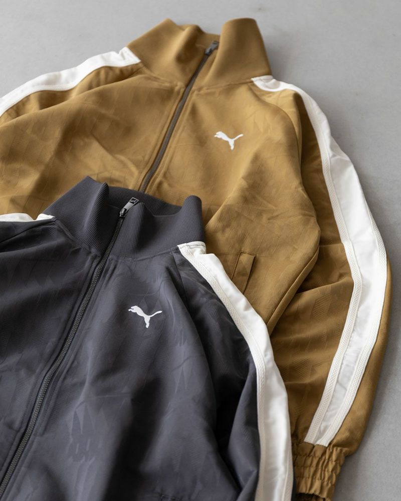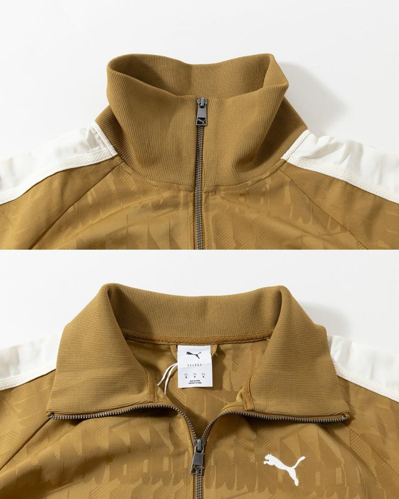 T7の由来となったサイドテーピングに、プーマロゴデザインのメタルダブルジッパー。裾や袖口は高い伸縮性を持たせてフィット感を向上させています。