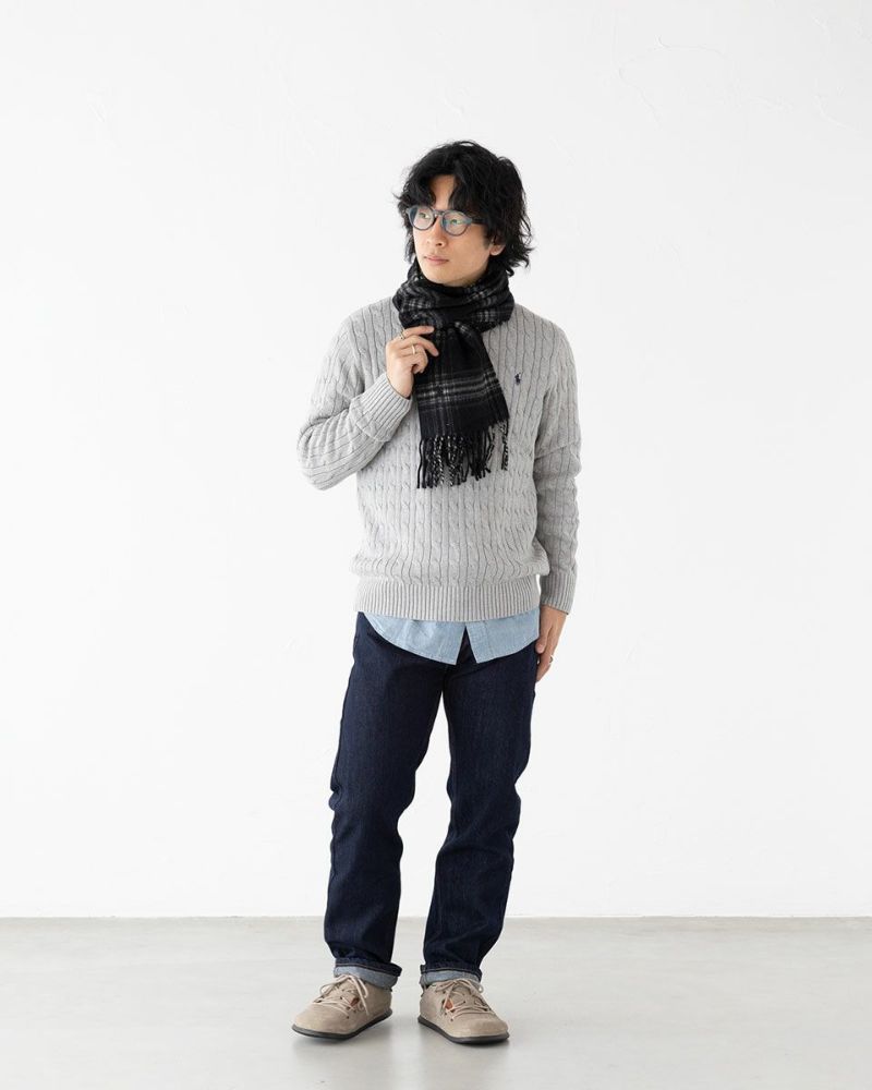 落ち着いたチェック柄が目をひくラルフローレンのマフラー。トラッドなアイテムで高い支持を集めるラルフローレンらしく、大人のコーディネートにも良く馴染むルックスです。