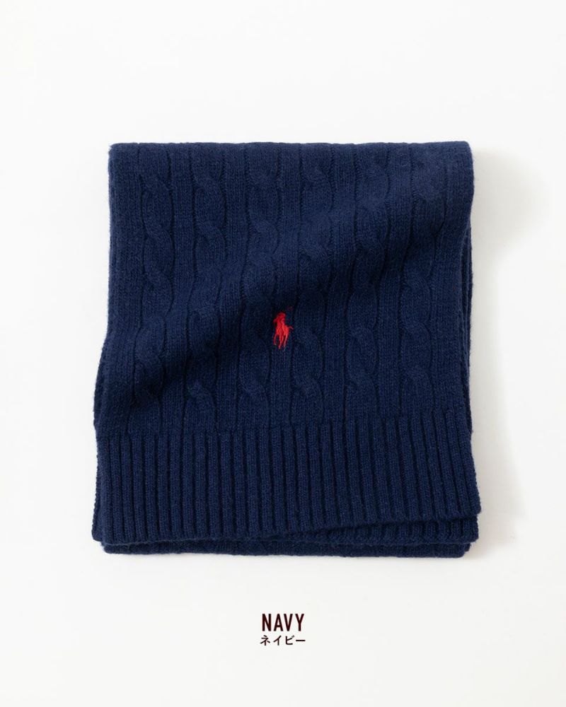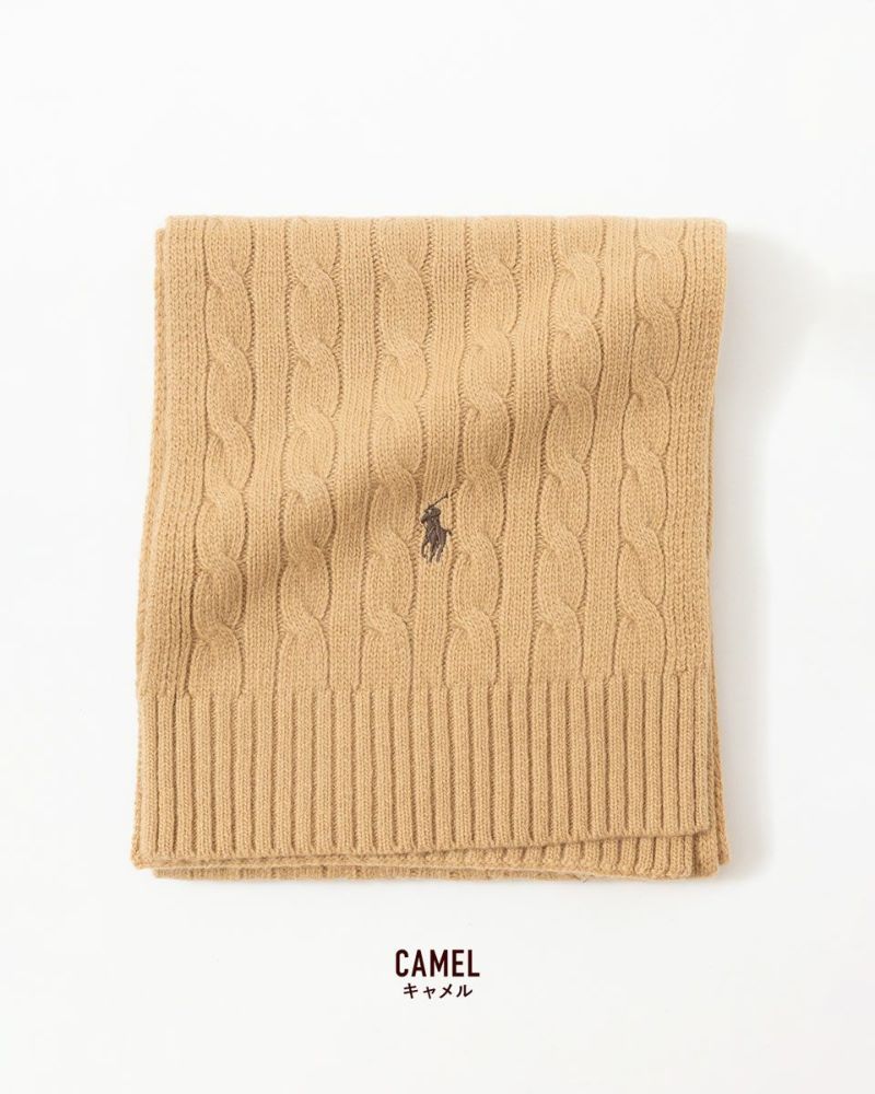ポロ・ラルフローレンらしい品格が漂うクラシカルなケーブル編みマフラー。