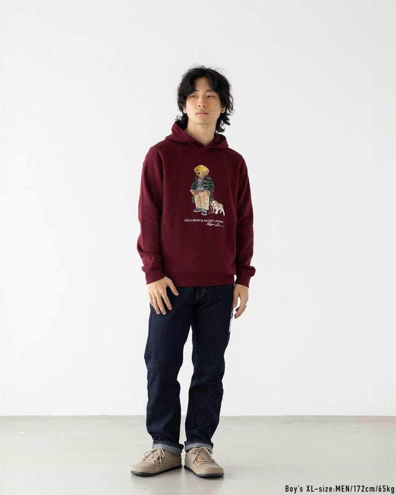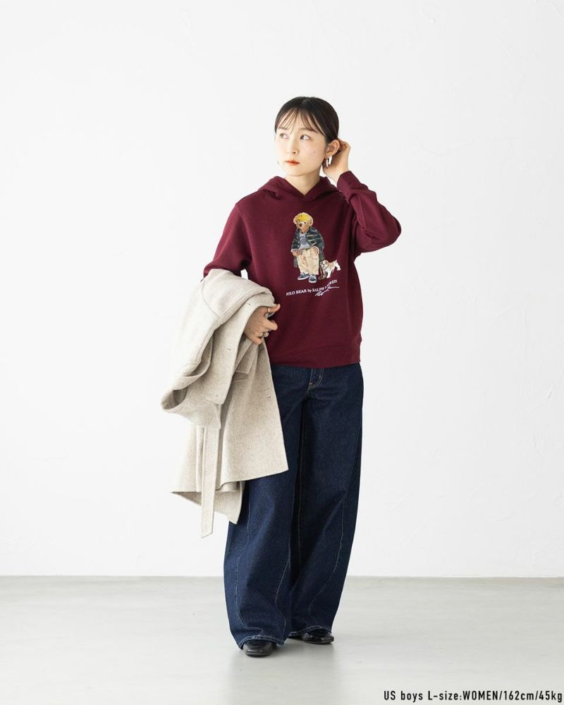 トラッドスタイルとの親和性が高く大人でも使いやすいポロベアは、海外ファッションリーダーもコーデに取り入れる近年注目のモチーフ。一枚着はもちろん、外しでコートの中着としても活躍します。