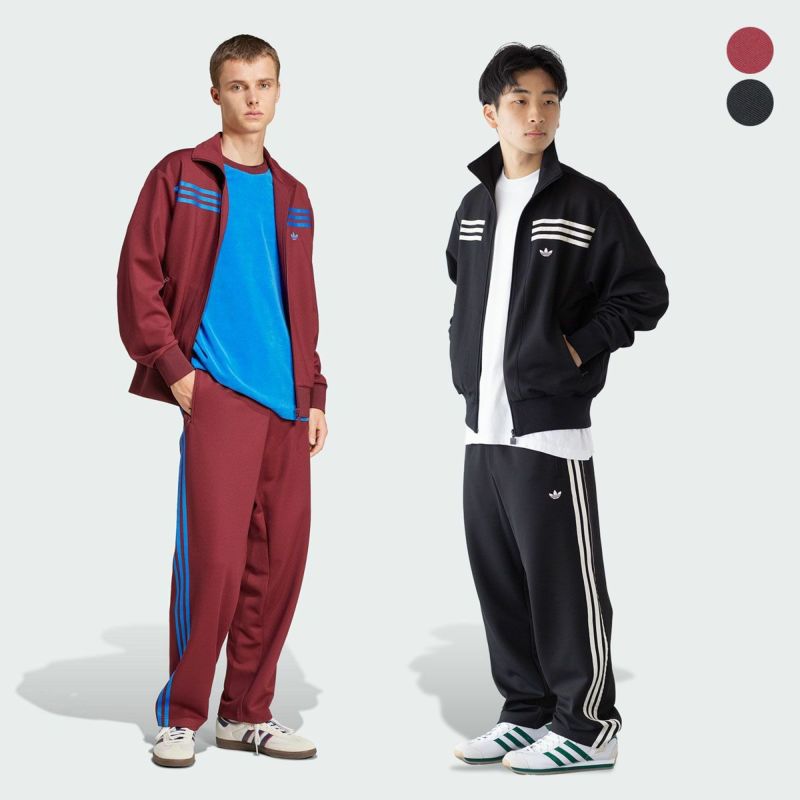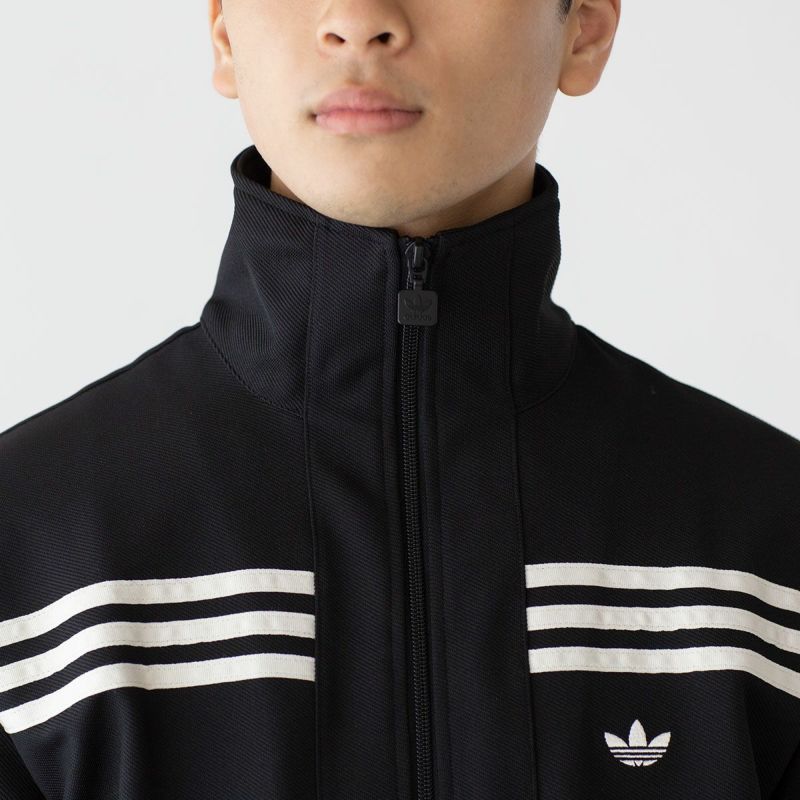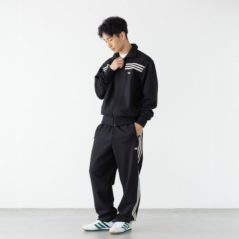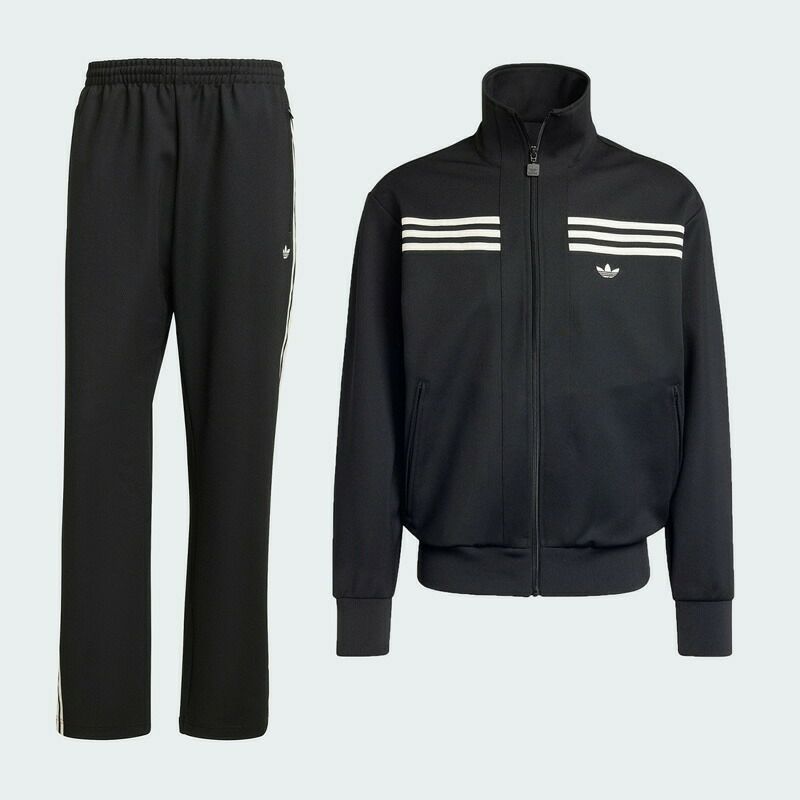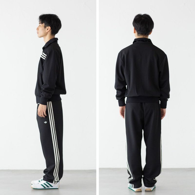 ジャケットの胸に施されたスリーストライプが印象的なトラックジャケット&トラックパンツの上下組。