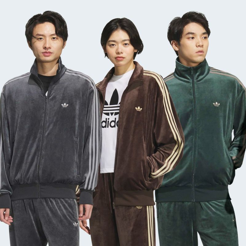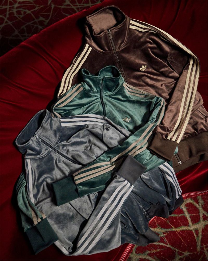 アディダスの名作ジャージ、ファイヤーバードをソフトで艶のあるベロア素材でアップデート。