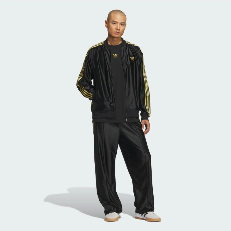 アディダス 光沢 ジャージ 黒×金 上下組 スーパースター パック トリコット トラックジャケット トラックトップ JZO91 トラックパンツ KUU14 adidas Originals メンズ レディース