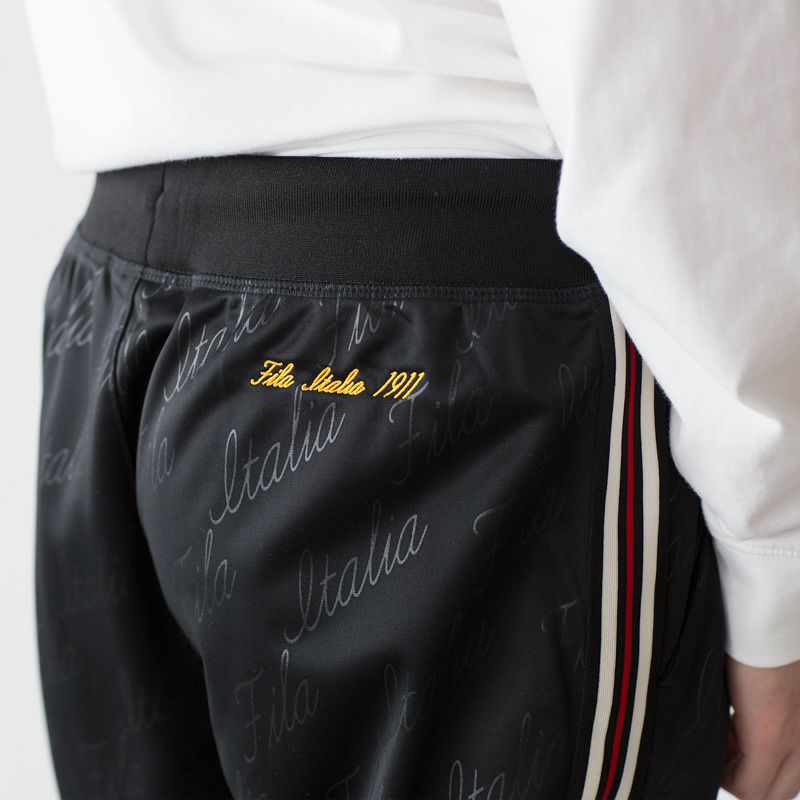 アメリカで流通しているFILAヘリテージラインのトラックジャケット&パンツ。90年代のスポーツストリートスタイルを彷彿させる2パネル切り替え、FILAらしいストライプテープ、ブラック同色のモノグラムプリントが目を引くデザインです。
