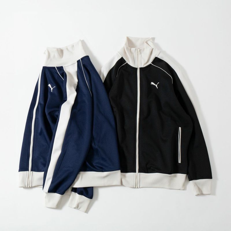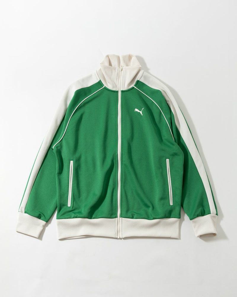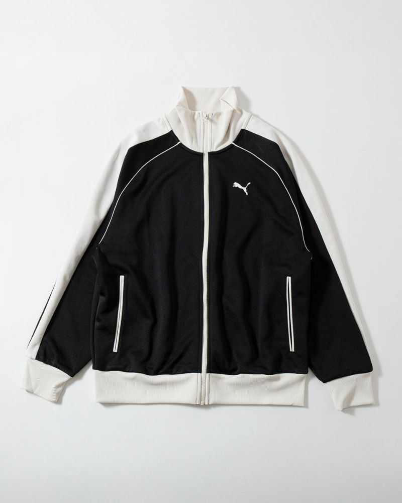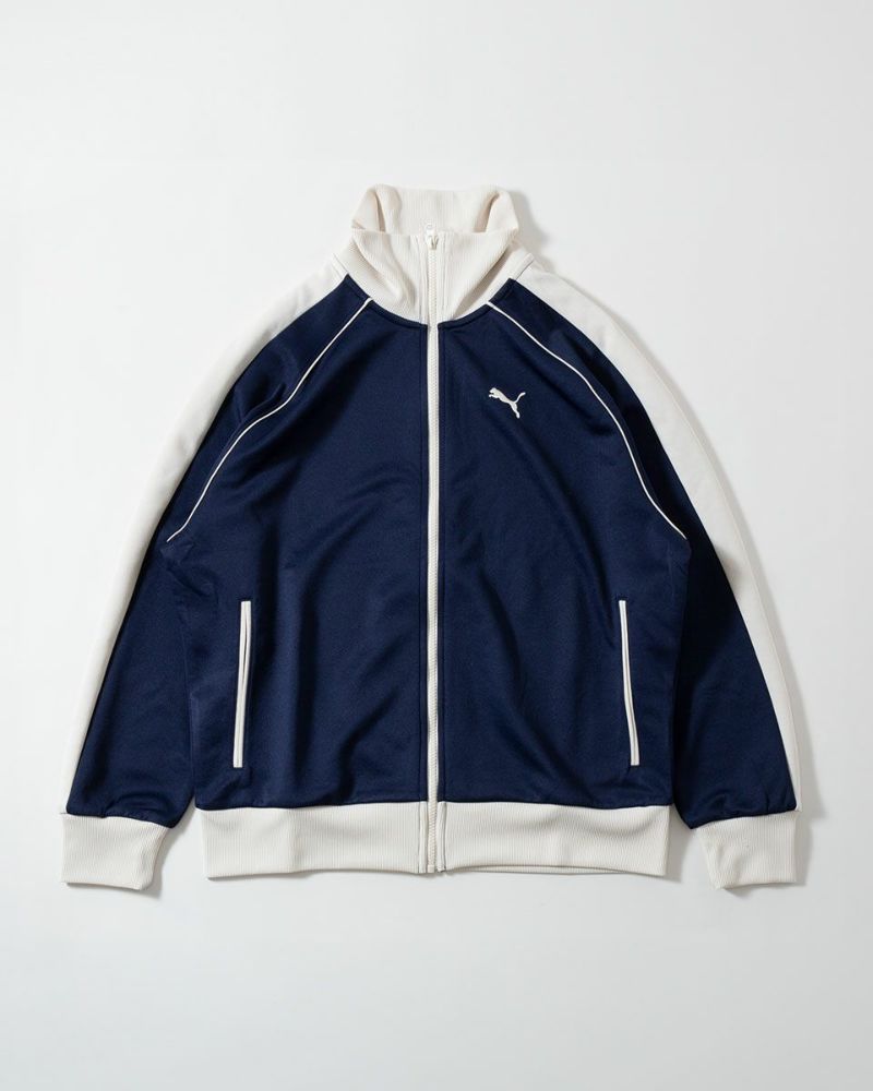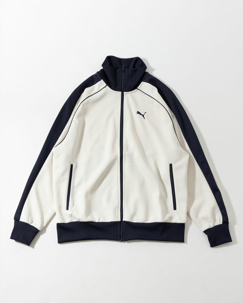 プーマが誇る名作ジャージT7より、日本人にマッチするサイズバランスで作られたトラックジャケットが登場。レトロなスタイルを演出できるラグランスリーブ、オフホワイトで切り替えた各所のリブとトリミングがポイントです。