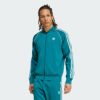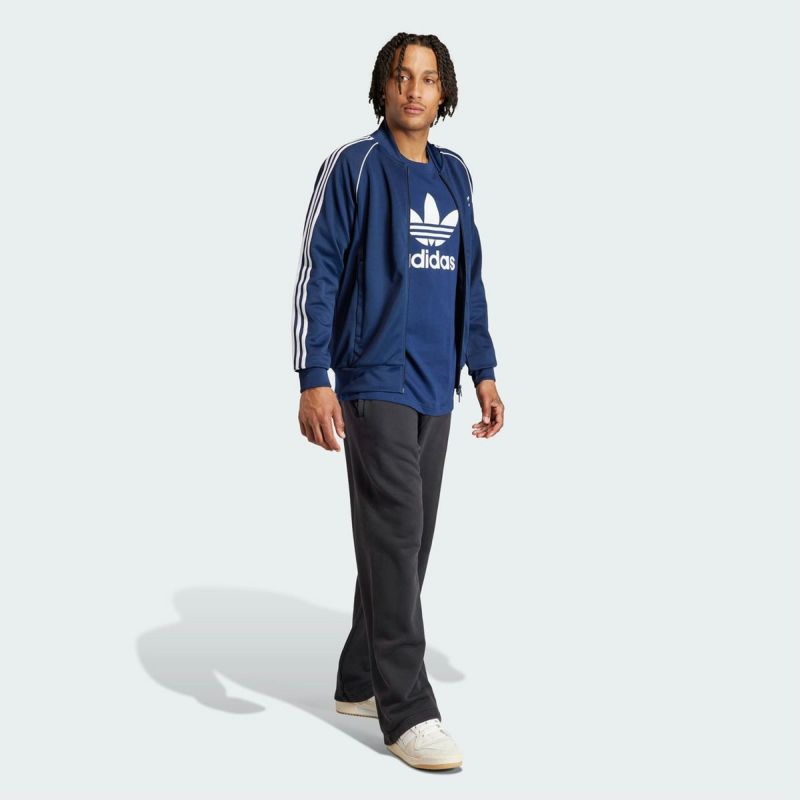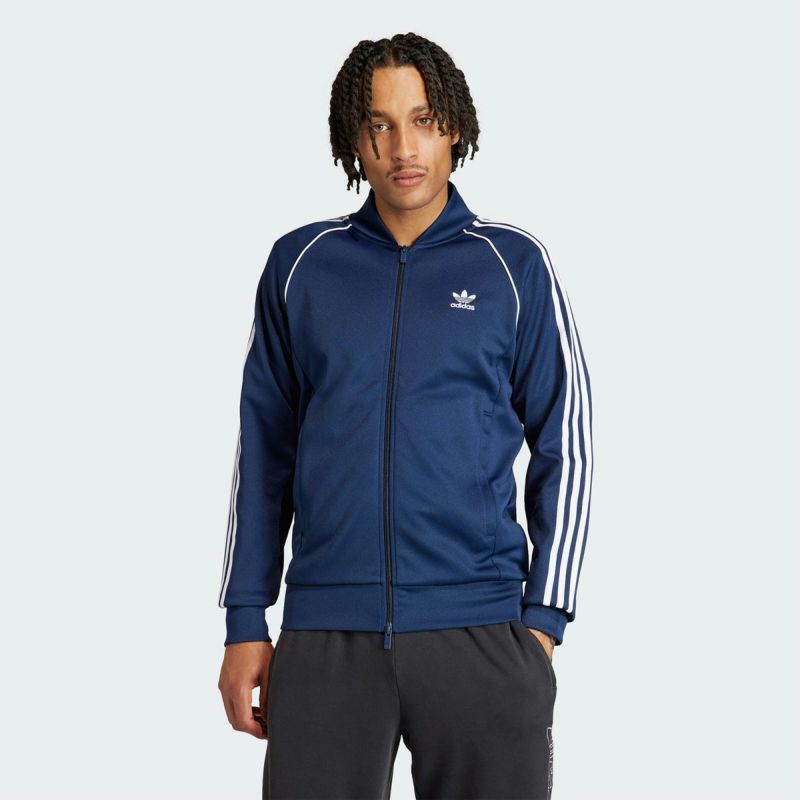 ファイヤーバードやベッケンバウアーと肩を並べるアディダスジャージの名品「スーパースター」。襟なしタイプとも呼ばれる、高さのないボンバーリブネックとラグラン袖の組み合わせが特徴です。