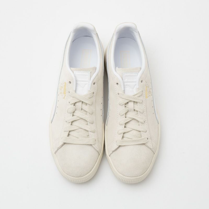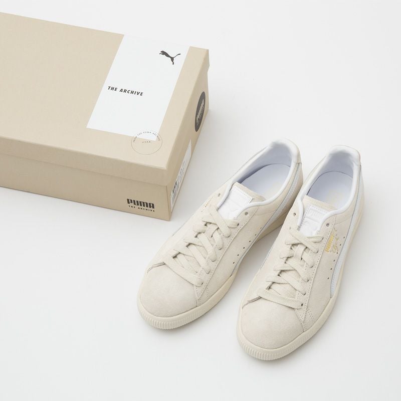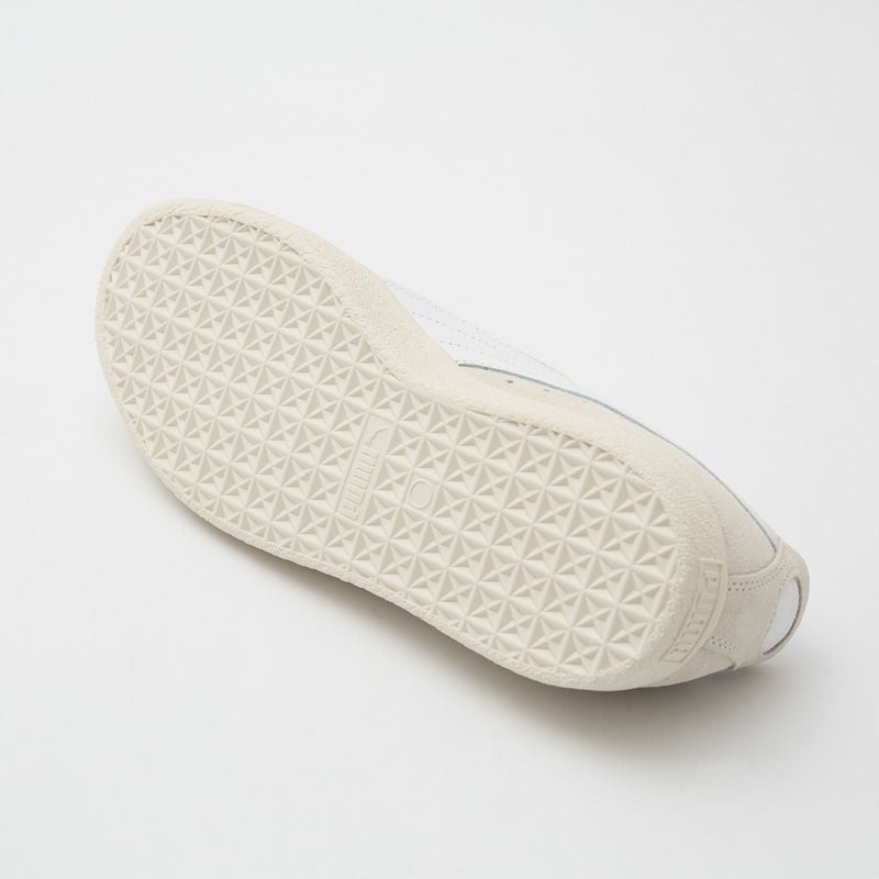こちらは落ち着きのあるアイボリーのスウェードをアッパーに採用したモダンに履けるワントーンモデル。シュータンラベルやヒールカウンターの装飾もシンプル化されています。ニュアンスのある白スニーカー感覚で、上品に様々なコーディネートに合わせられるプーマの名作スニーカーです。