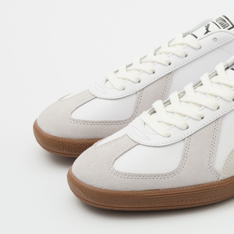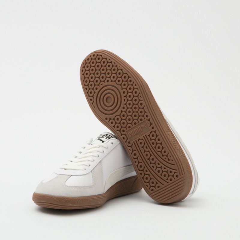 ジャーマントレーナーをして知られる1970年代のドイツ軍トレーニングシューズをプーマが華麗にアップデート。オリジナルを彷彿させるルックスに、ブランドを印象付けるフォームラインとPUMAアイコンをオン、クラシックかつ新鮮な一足に仕上がっています。グリップ力の高いラバーソールは歩きやすく、タウン用にもピッタリ。普段のコーディネートに取り入れやすい一足です。
