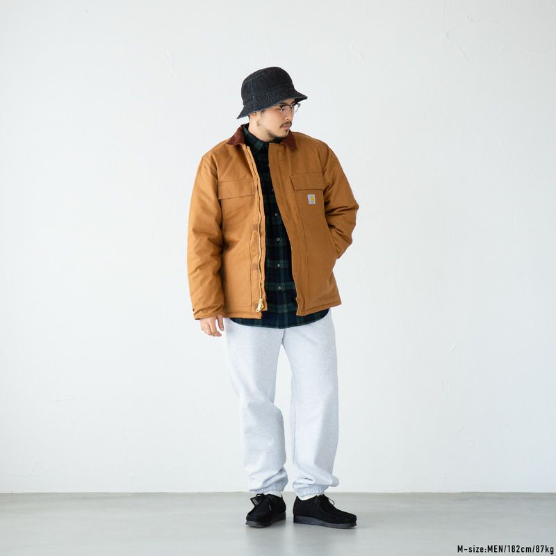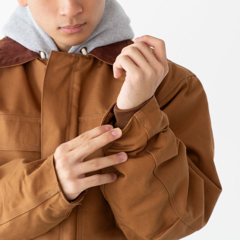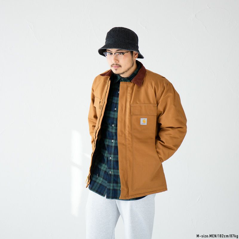 「デトロイトジャケット」、「チョアコート」に次ぐカーハートの定番アウター、トラディショナルコート。コーデュロイの切り替え襟のついたクラシックなデザインで、厚手のコットンダック生地が渋く男らしい魅力を放ちます。