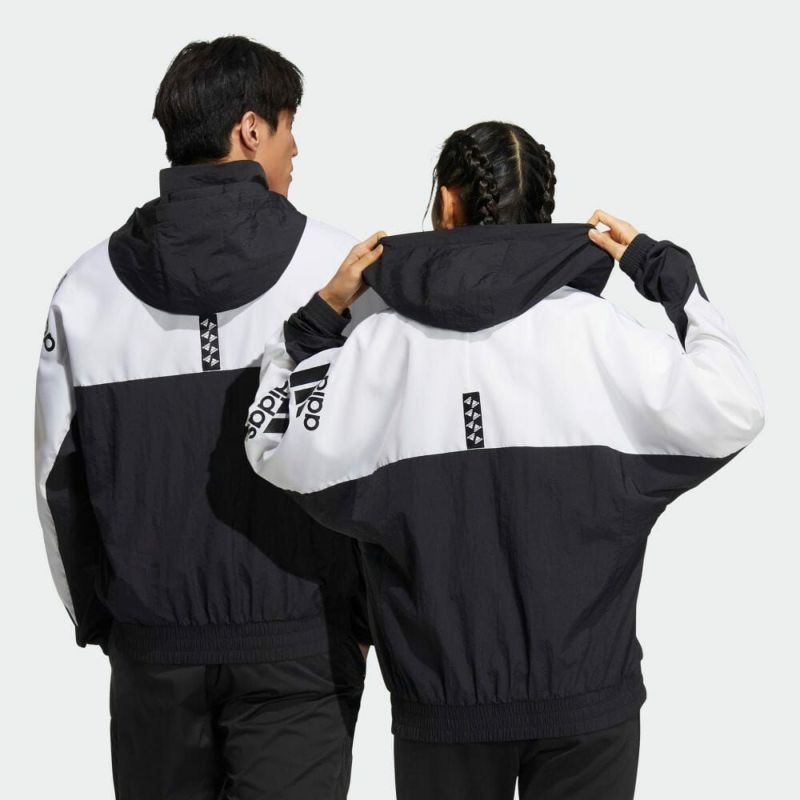 モダンなモノトーンスタイル、アディダスのロゴを自由に使いブランディングを主張したウインドブレーカー。どんなシーンにもマッチする、普段のスタイルをワンランク上に引き上げるアイテムに仕上げています。