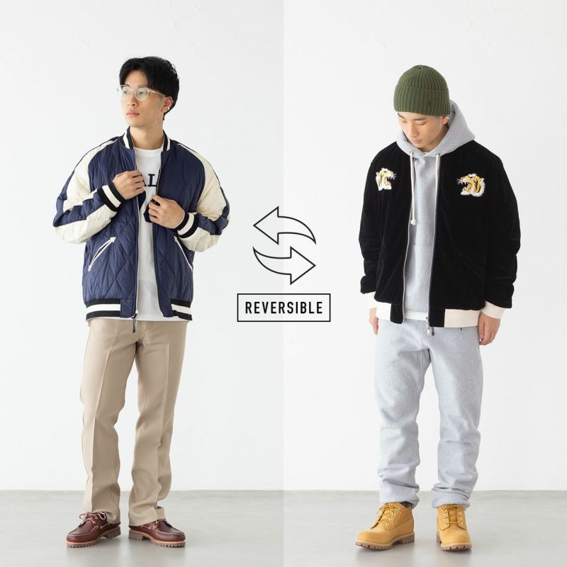高品質なダウン素材で話題沸騰中のブランド「TAION」が手がけたリバーシブル仕様の両面スカジャン。