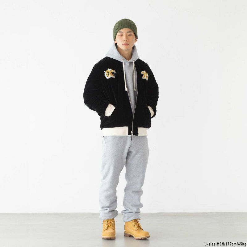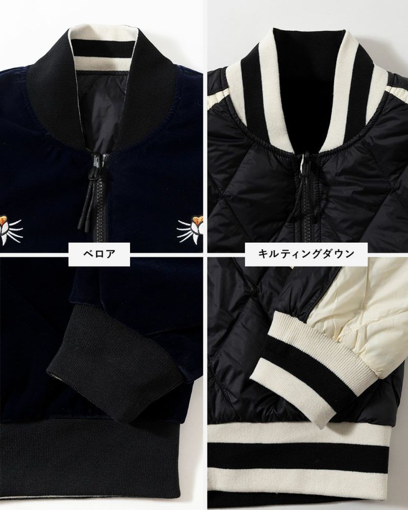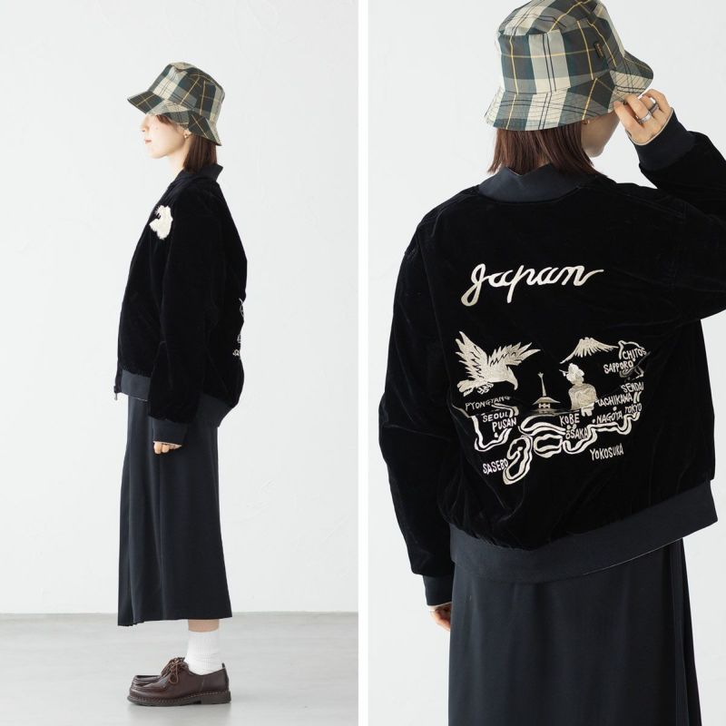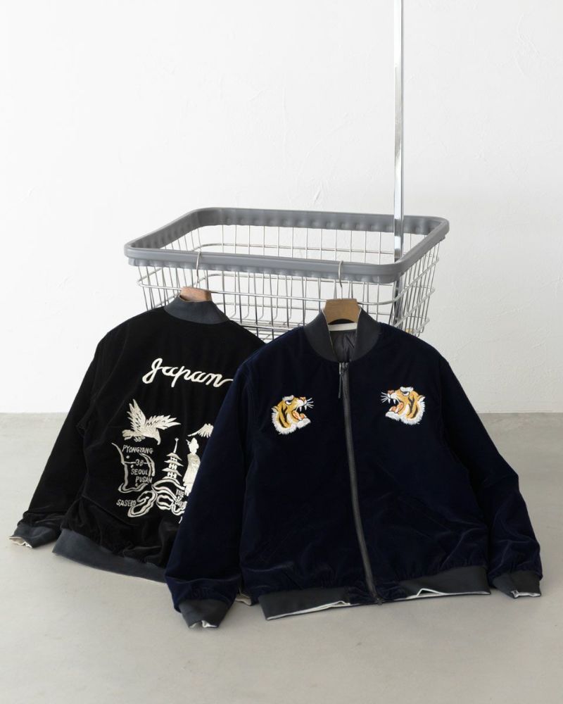 ・表地には、ベロア生地に前後スカジャン風の刺繍を入れています。