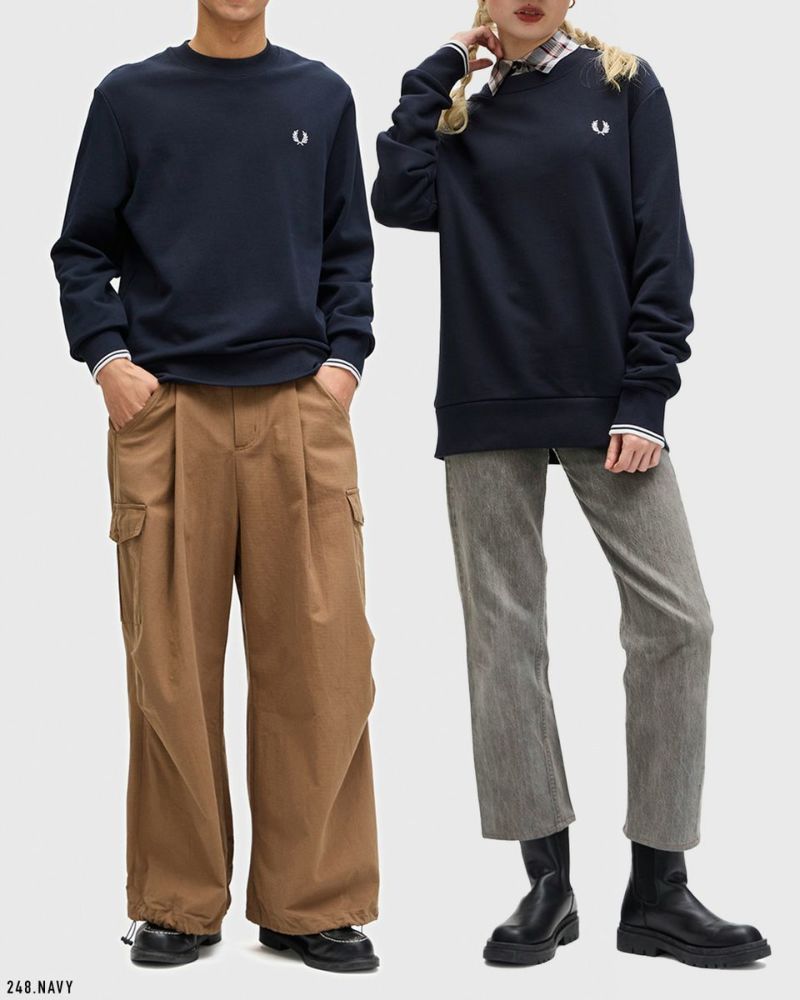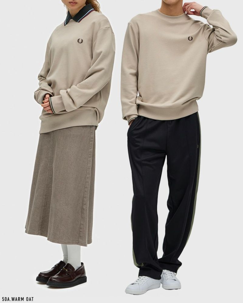 こちらはフレッドペリーシャツを思わせる、ティップラインを袖口にあしらったスウェットシャツ。