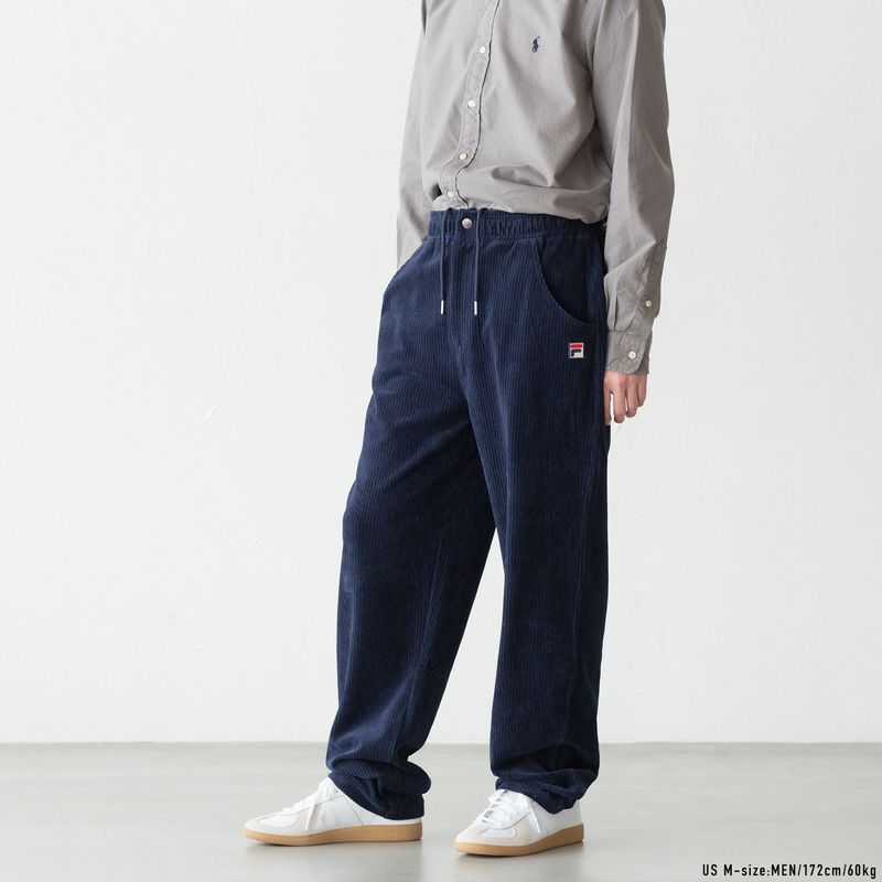 アメリカで流通しているFILAヘリテージラインのベロアパンツ。太畝のコーデュロイに見えるクラシカルな風合いの生地を採用し、トラウザースのような快適性と上品な印象を備えたアイテムに仕上げています。