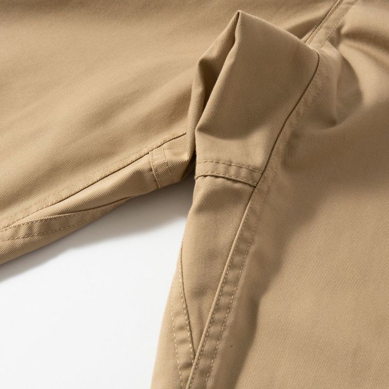 無骨な雰囲気かつ、裾上げダブル仕様やタック入りで質実剛健なつくりが特徴。