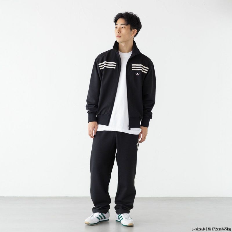 ジャケットの胸に施されたスリーストライプが印象的なトラックジャケット&トラックパンツの上下組。