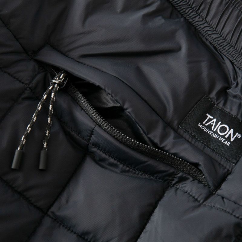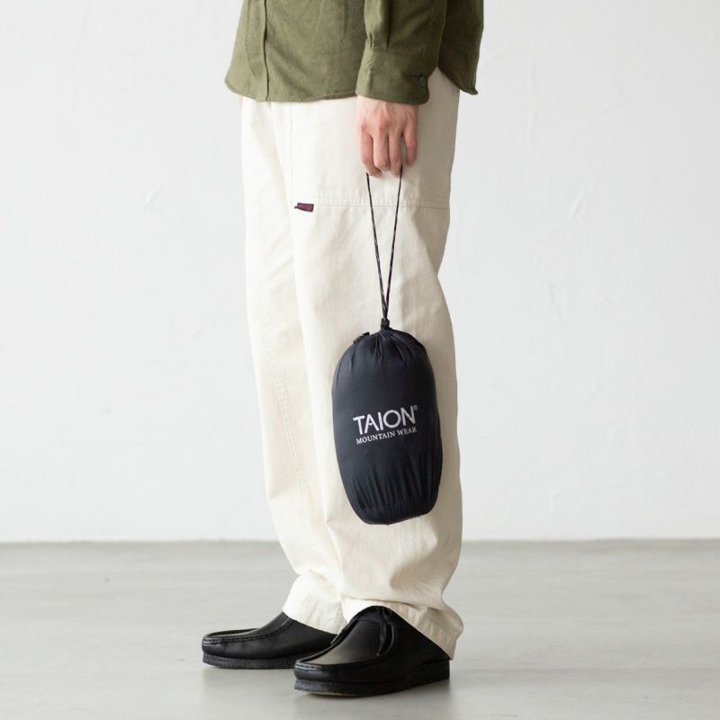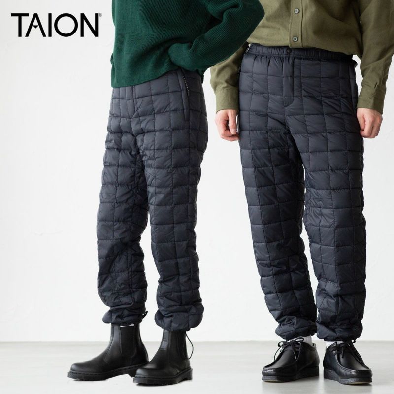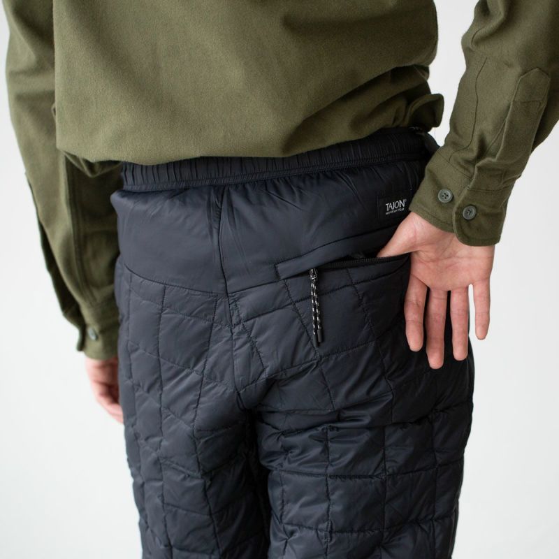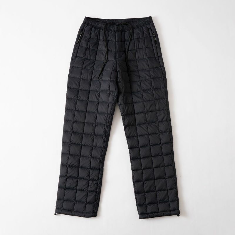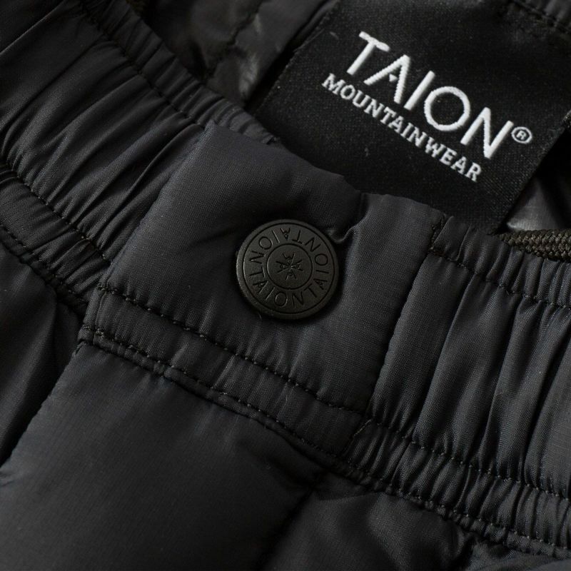 話題沸騰のダウンウェアブランド「TAION」。こちらはコンパクトに持ち運び運べる、キャンプなどアウトドアシーンに最適なマウンテンラインのダウンパンツです。