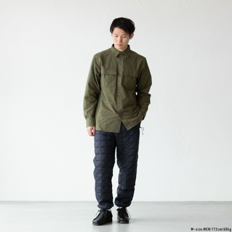 野暮ったくならない絶妙なシルエット。単体で穿くのはもちろん、アウトドア使用なら下にサーマルパンツなどを重ね穿きすることで保温性も上がり着用感もアップします。
