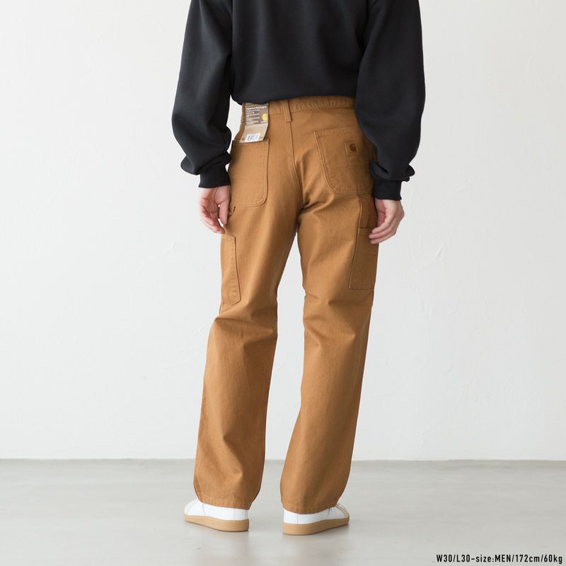 カーハートUS企画の定番ボトムス、ウォッシュドダック生地のワークパンツ。12オンスの地厚な生地とほつれ知らずなトリプルステッチ縫製でタフにつくられた逸品です。