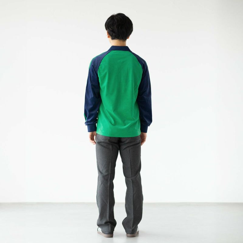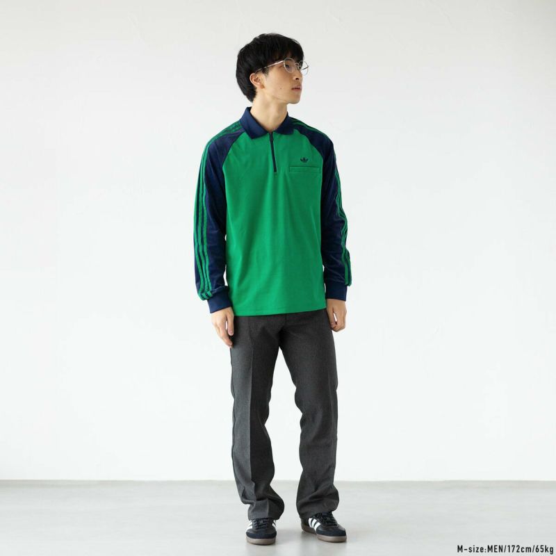 70年代を彷彿とさせるスポーティーなデザインのベロア長袖ポロ。