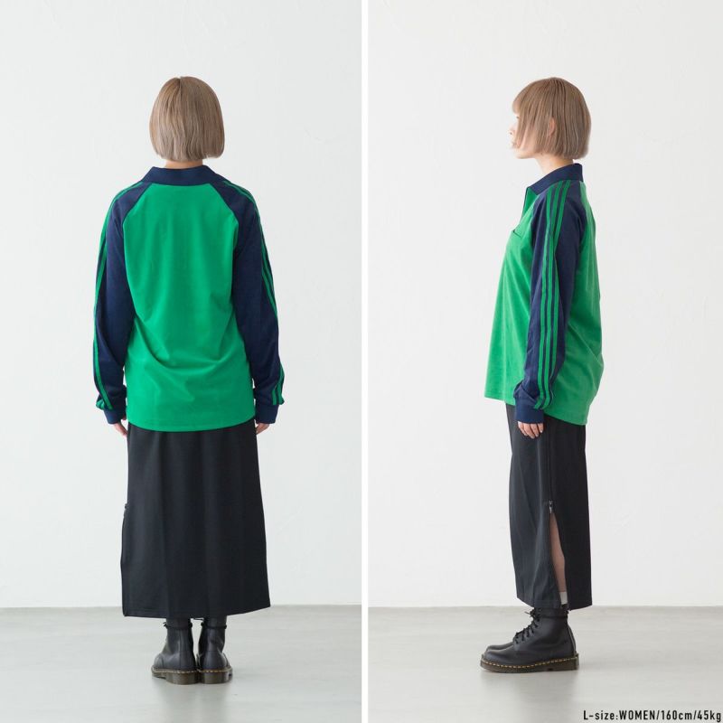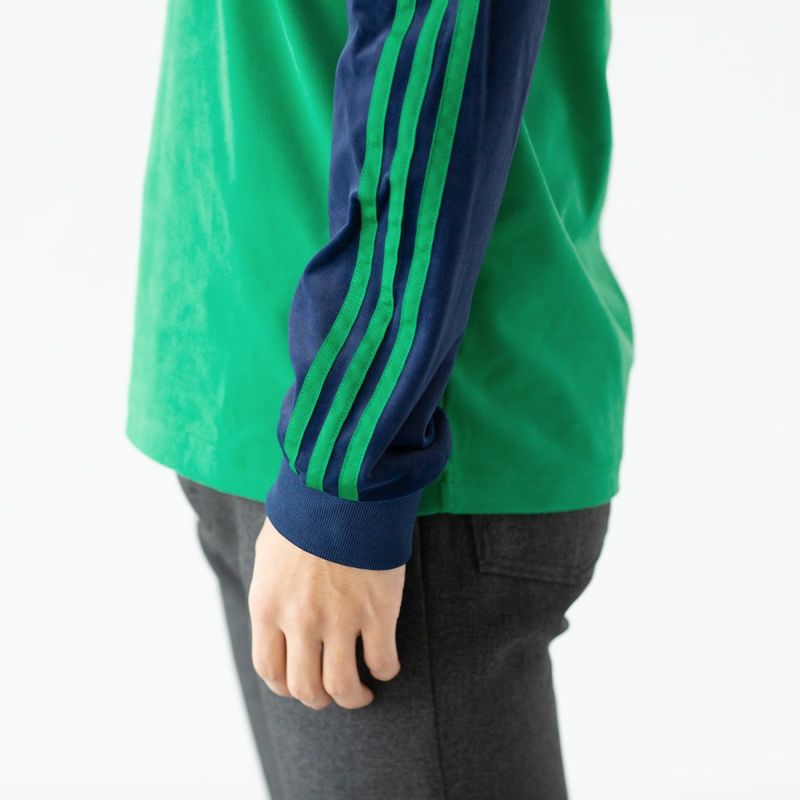 お馴染みのスリーストライプはグリーンの配色でスポーティーなスタイルを格上げ。