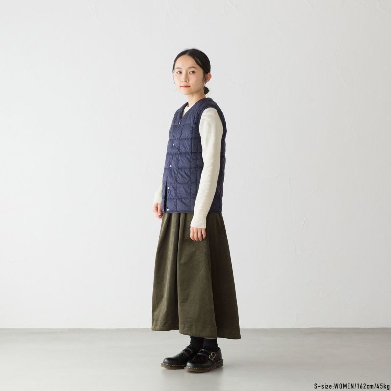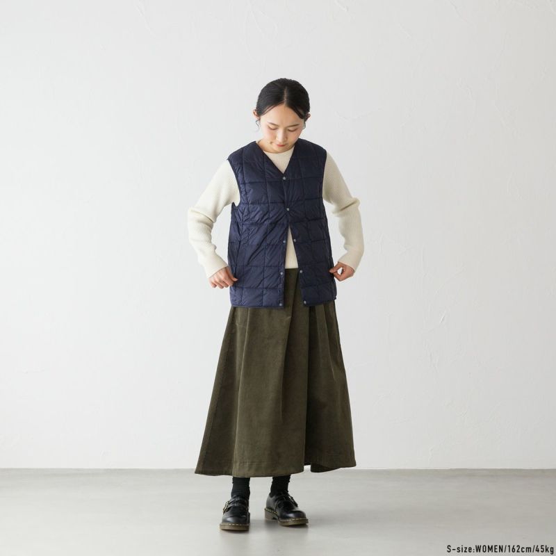 柔らかくハリのあるナイロン生地、800FPの上質なダウンを使用しています。 丈夫でありながら軽く暖かい、ダウンウェアに対するTAIONのこだわりが伺える素材選びです。