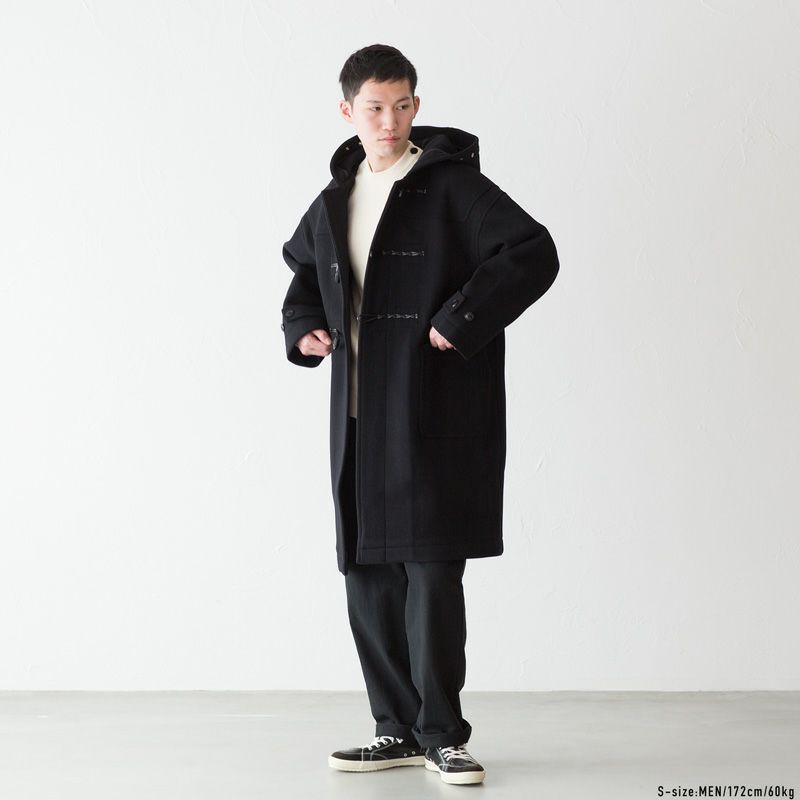 今の気分にマッチするカジュアルにゆるく羽織れるオーバーサイズ・ダッフルコート。ドロップショルダーになるよう肩と身幅を大きく設定、袖丈はバランスを考え短めに調整されています。
