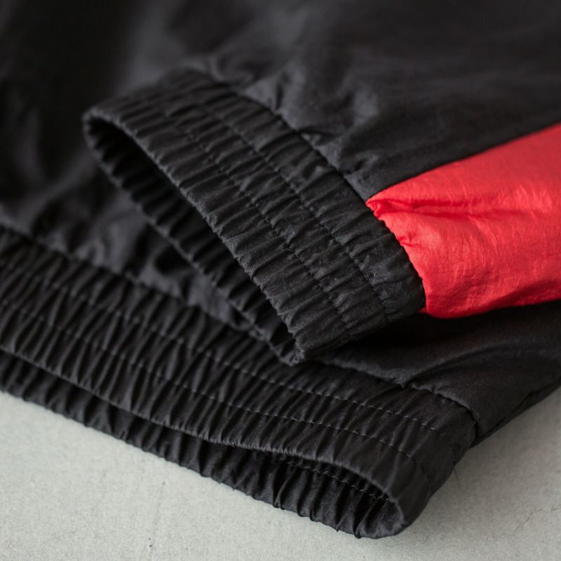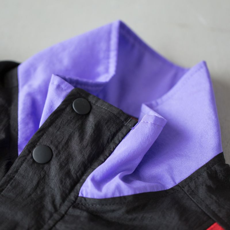 オリジナルのバッジ、カットライン、カラーブロッキングを斬新な素材使いで強調。