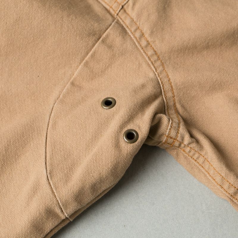 水分をはじき汚れが付きにくい加工済みの厚手のキャンバス地は、ウォッシュ加工された着慣れた風合いが魅力。