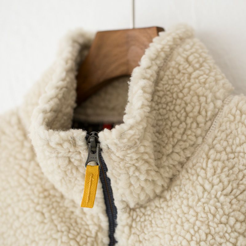 1912年、ハンティングブーツの製造販売メーカーとして創業した、米国メイン州の老舗アウトドアブランド「L.L.Bean」。 こちらは防寒性のある厚手シェルパ・フリースで仕立てた、クラシカルデザインのボアジャケットです。左胸にはL.L.Beanのレトロなアイコン、カタディンロゴを備え、肩口と裾は伸縮性のある素材でトリミング。適度にゆとりを持たせたレギュラーフィットで、寒い季節は中着もしっかり着込めます。