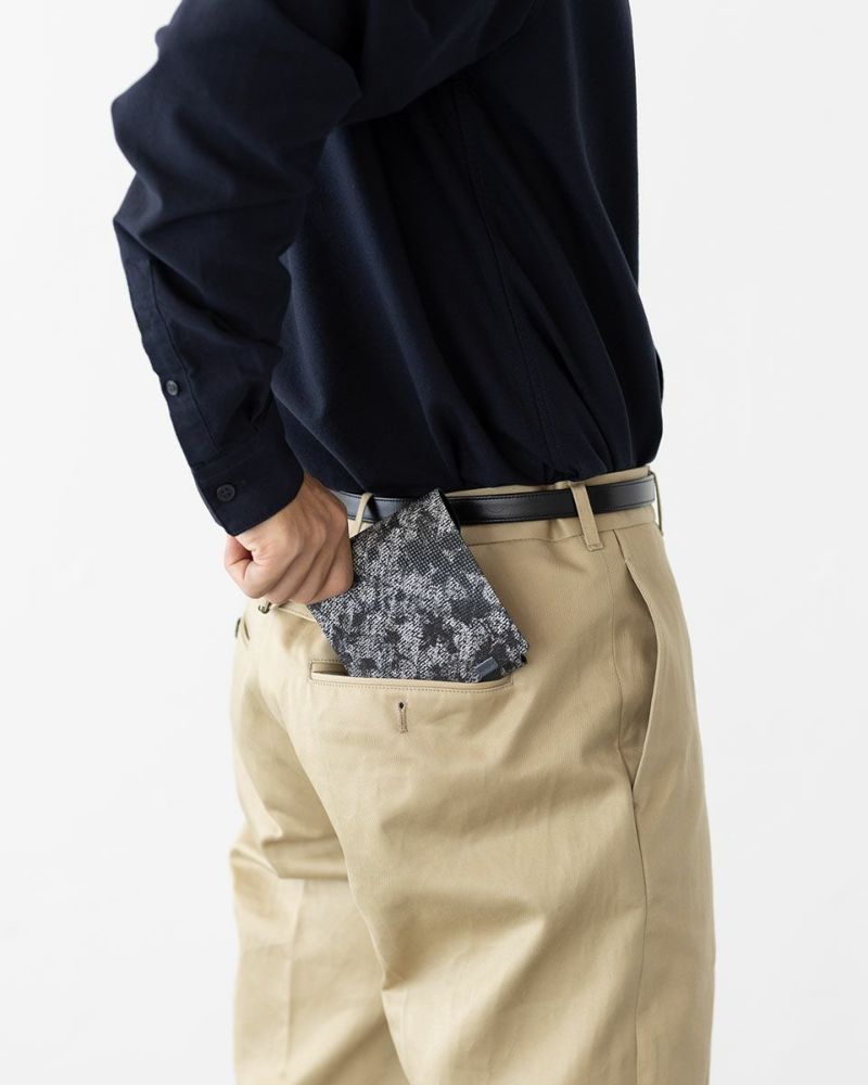 日本で古くから伝わる、贈り物や金品を和紙で包んで手渡す際の礼法「折形」。紙が折り重なるように一枚革を折り、ネジ一本のみで留めただけのミニマルな仕立てが唯一無二の特徴です。一箇所で留めるその大事な部分にはハードロック工場の「ハードロックナット」を使用。日本古来の構造建築にみられるクサビ原理をもとに造られ、強力な緩み止め効果を発揮します。