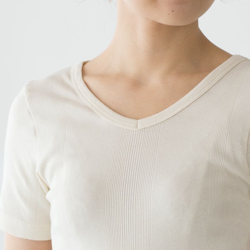 抵抗のない仕立てと、お洗濯を繰り返しても損なわれないフィット感が嬉しい、素肌に毎日着たいカットソーです。
