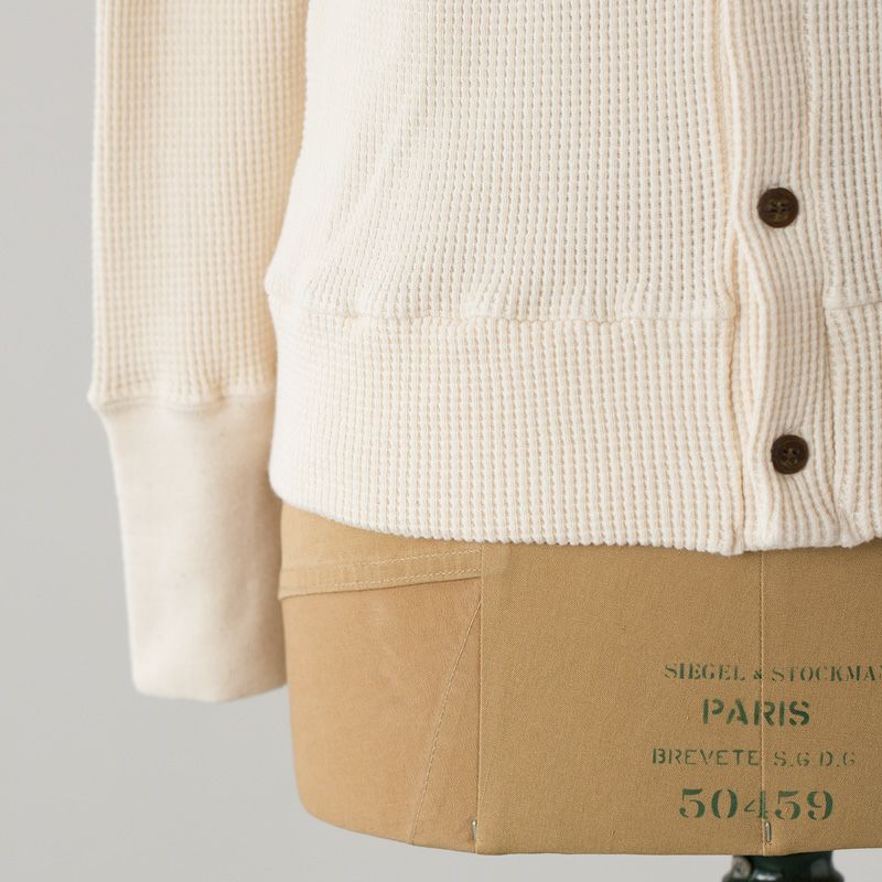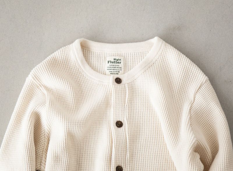 生地メーカー発のファクトリーブランドである「Hight Flutter」のワッフル生地は、貴重な旧式のフライス機を使って編まれたクラシックな仕上がり。