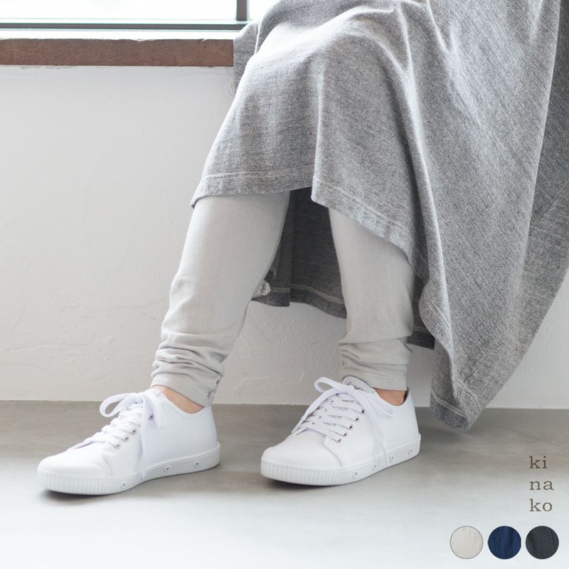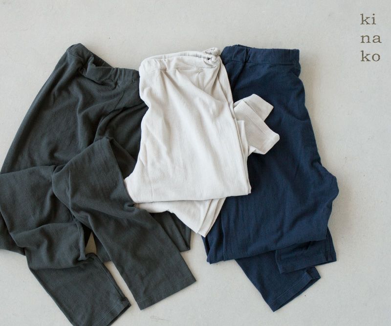 コットン100%の薄く軽い生地のレギンスは、防寒にはもちろん、暑い季節のレイヤードスタイルにも便利。