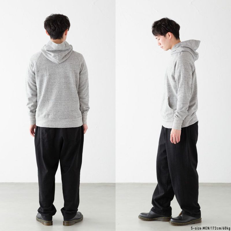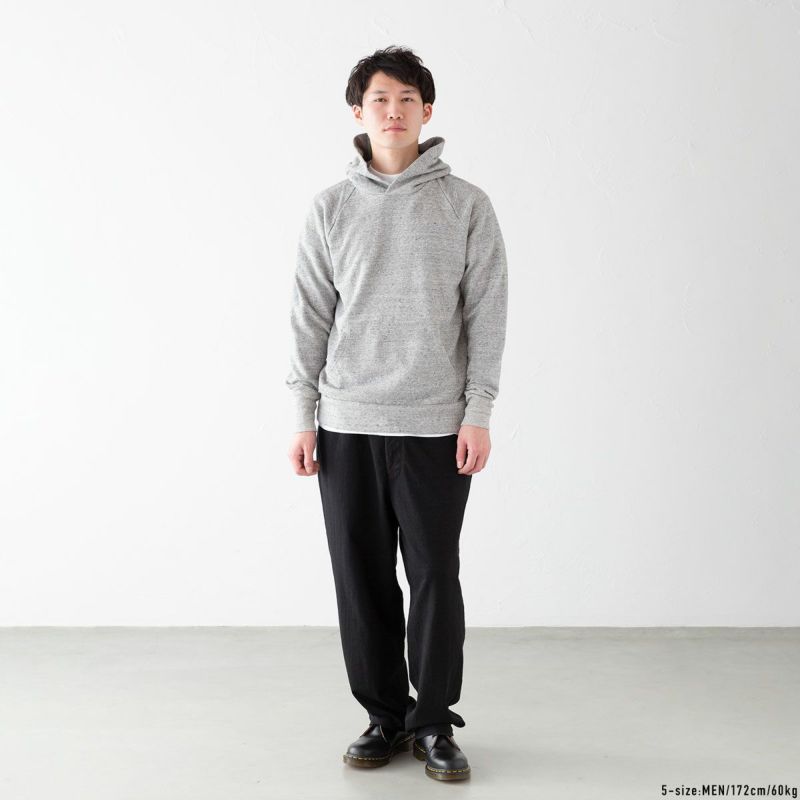厚すぎず、さらりと着られるプルオーバーパーカーは幅広いコーディネートにマッチ。