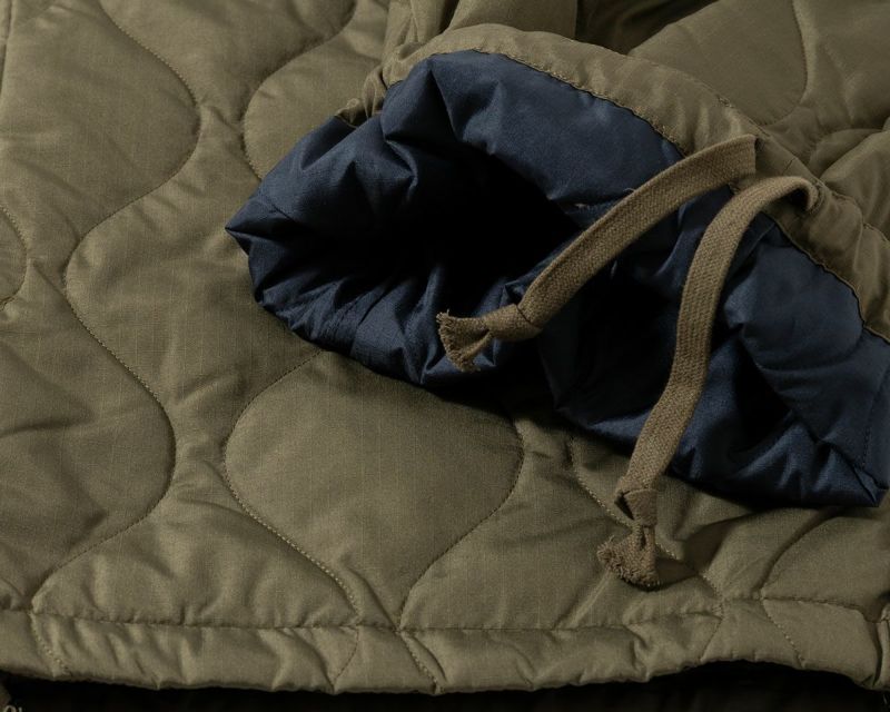 TAIONのミリタリーラインに採用されている、ひょうたんステッチのダウンキルティング。しっかりとハリのあるリップストップ生地は耐久性抜群です。