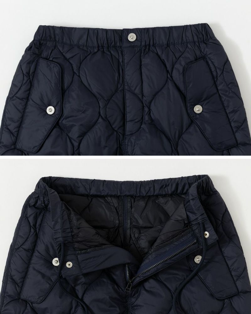 軽量ダウンのやわらかな暖かさで、室内でそのまま穿いていても快適。おうち時間の冷え対策としても活躍します。