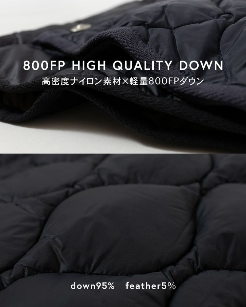 中綿には、ふくらみのある800FPの上質ダウンを採用。軽量でありながらしっかりとした保温力があり、寒い日もこれひとつで安心の暖かさです。