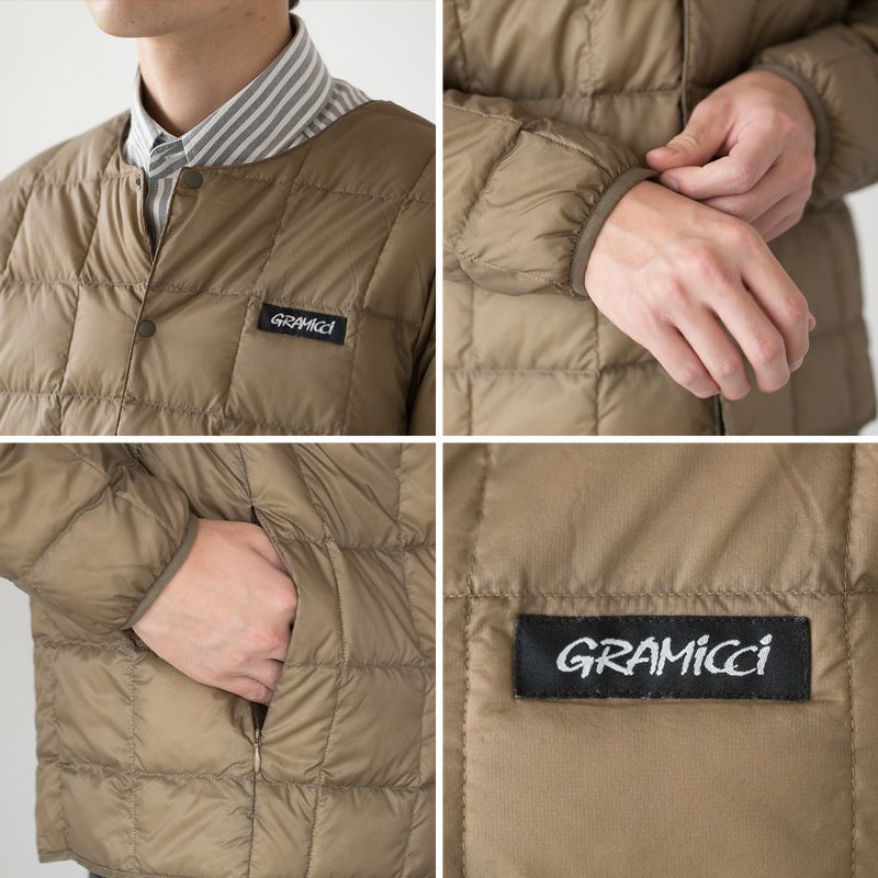 TAION グラミチ インナー ダウン ジャケット Gramicci G2FU-J082-TG タイオン 体温 コラボ ダウン メンズ ノーカラー