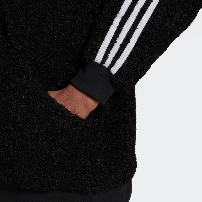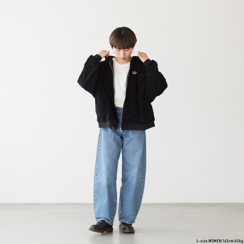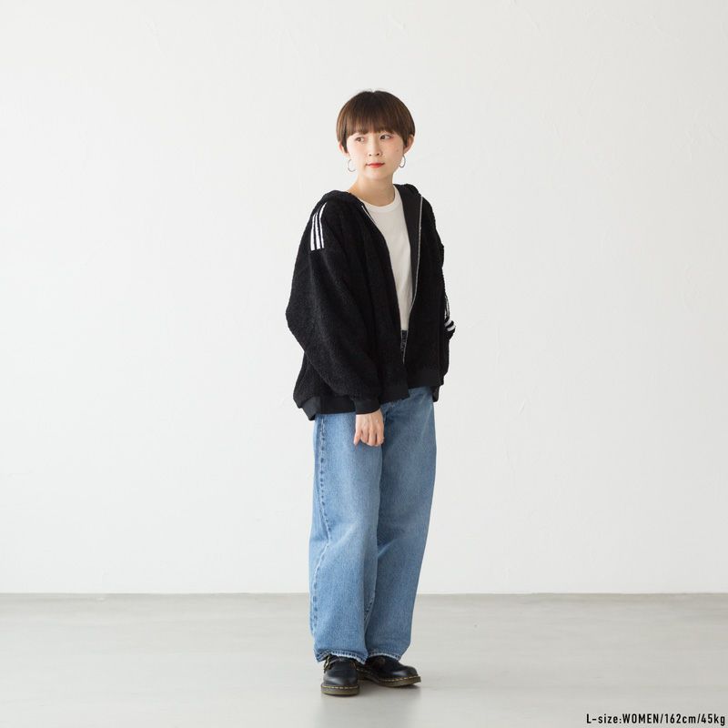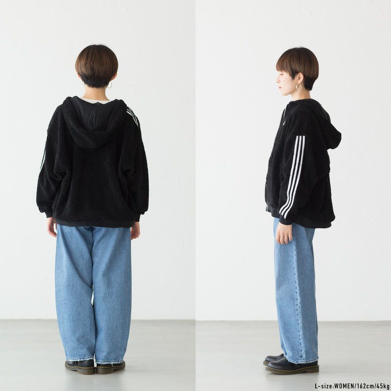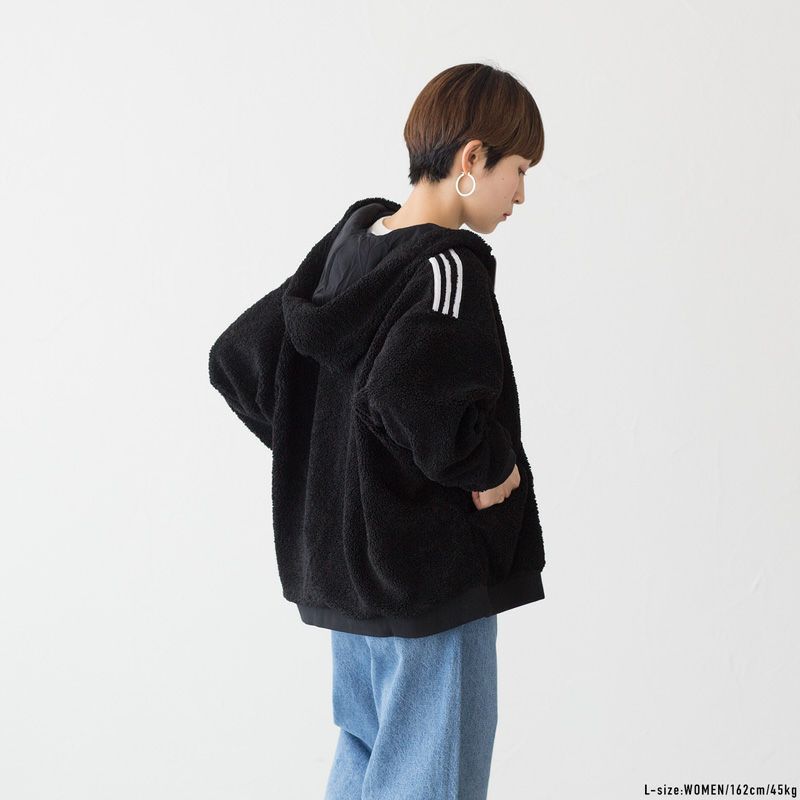 ルーズシェイプでラフなスポーツスタイルが楽しめるアディダスのシェルパジャケット。ふわふわとしたパイル状のテキスタイルが、寒い風から身体を温かく守ってくれます。左右の袖に異なるパターンであしらわれたスリーストライプが特徴のデザイン。裏地には綿100%のフライス生地を使用し、Tシャツのようなソフトな肌触りに仕上げています。クラシックなスタイルに素材とディテールでアクセントを加えたアウターパーカー。毎日でも着たくなる快適な着心地が持続します。