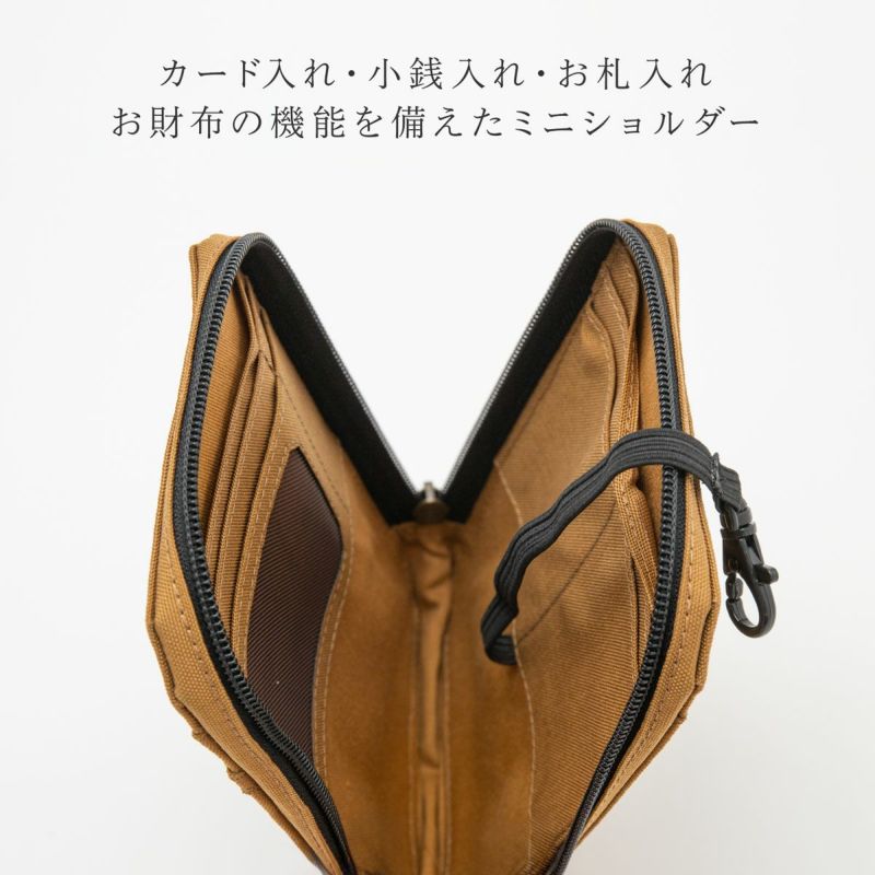 お金とカードをしっかり収納でき、さらにスマートフォンやキーリングなども一緒に入れられるショルダーポーチ。 軽量で頑丈なナイロンダック生地を採用し、ミニショルダーバッグやサコッシュ感覚でコーディネートのアクセントになる縦長のスクエアフォルムに仕上げています。