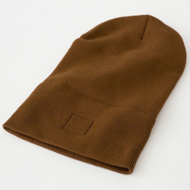老舗ワークブランド、Carharttの定番ニットワッチ。被り口は10センチの折り返し付きでボリュームがあり、ほどよくルーズに被れる長さのシンプルなデザインです。フロントに縫いつけられたロゴ刺繍ラベルがブランドを象徴するアクセントになっています。