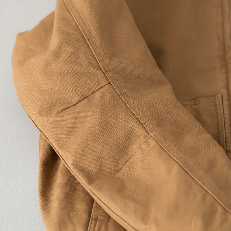 12オンス定番ダック生地のボディにはウォッシュド加工を施し、長年着込んだようなビンテージライクな風合いを表現。最初から身体に馴染む快適さも備えています。